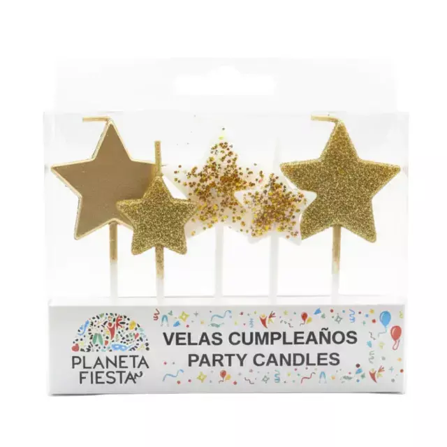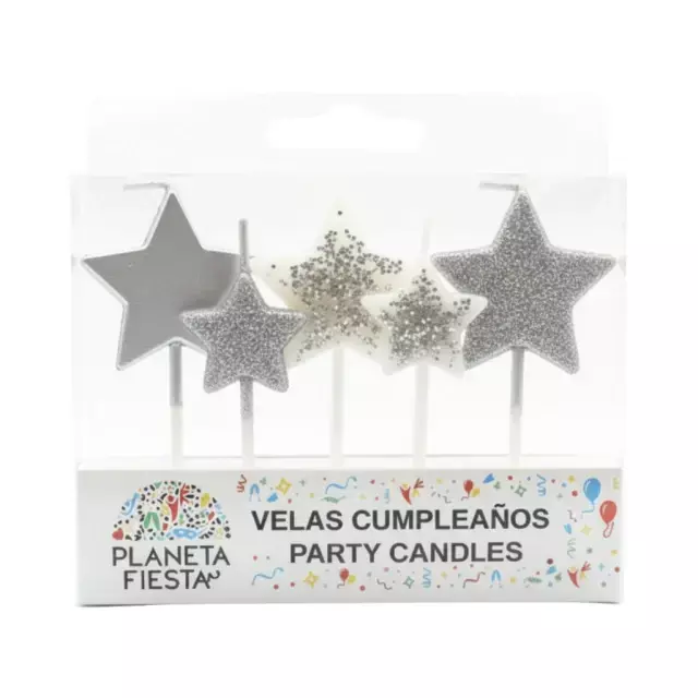 Set Velas Estrellas – Plateado y Dorado Sumá brillo y estilo a tus celebraciones con este set de velas en forma de estrella. Viene en tonos plateado y dorado, ideales para tortas, mesas dulces y festejos especiales. Su diseño elegante y festivo combina perfecto con cualquier temática, aportando un detalle que realza la decoración al instante. Un toque brillante para hacer tus mejores deseos ✨⭐